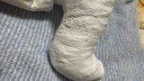装具を着けると以下のような状態で、主にふくらはぎ側のパネルの上部、太もも側のパネルの下部、そして裏側の金具が足に食い込む形になるためそこが荒れやすいようでした。