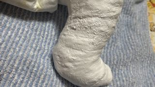 療育センターの先生に「恐らく次の病院では石膏のギプスに変わる」と伝えられていた通り、こども病院では石膏のギプスを巻いてもらいました。※初診時、巻いてあるギプスが石膏タイプではなかったため先生に少し驚かれました。石膏は完全に固まるまで48時間...